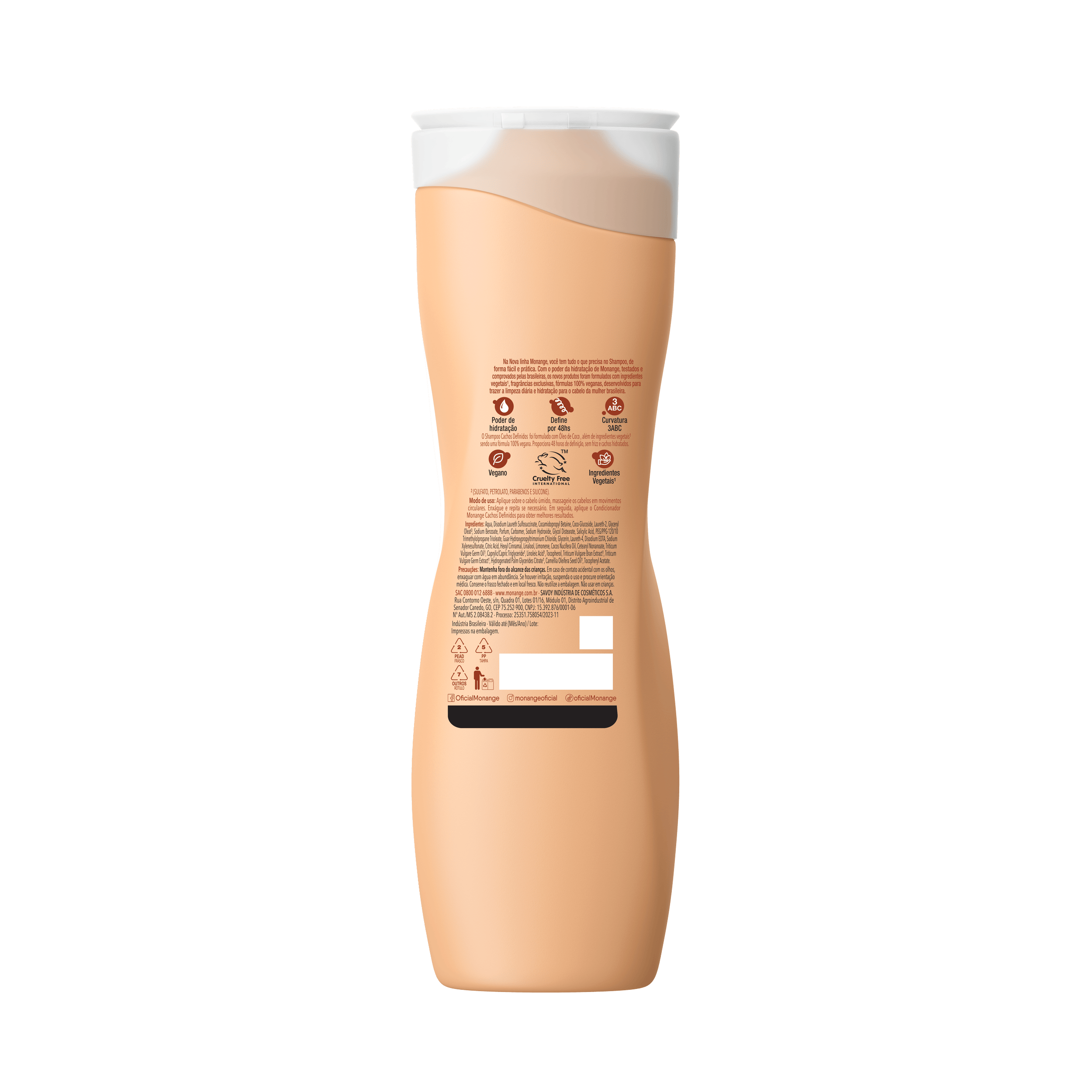 O Shampoo Monange Cachos Definidos é indicado para cabelos cacheados, ideal para curvaturas 3ABC e conta com o poder do Óleo de Coco. O shampoo proporciona cachos hidratados, sem frizz e definidos por 48h. Para melhores resultados, é recomendado também o uso do condicionador e creme para pentear da linha Cachos Definidos.