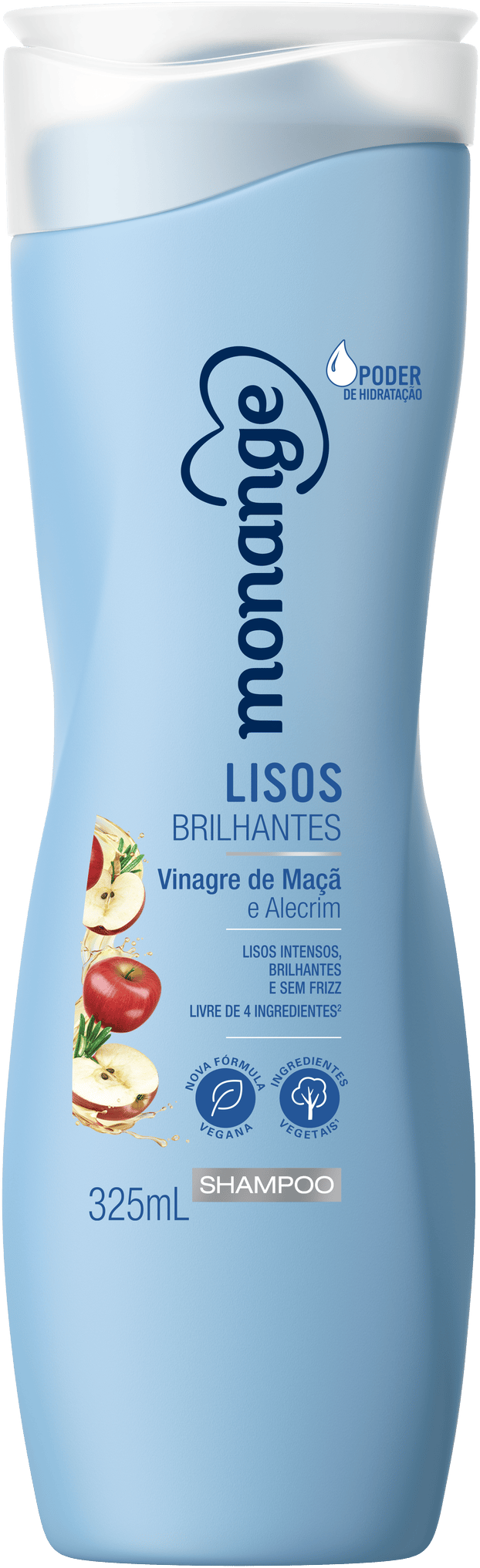 O Shampoo Monange Lisos Brilhantes é indicado para cabelos lisos e conta com uma poderosa combinação de Vinagre de Maçã e Extrato de Alecrim. O shampoo promove lisos intensos e brilhantes com efeito espelhado e aspecto sem frizz. Para melhores resultados, é recomendado também o uso do condicionador da linha Lisos Brilhantes.